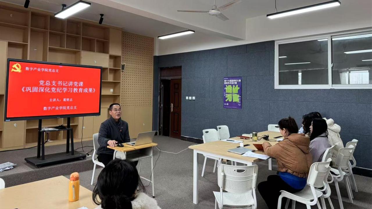 为深入贯彻落实习近平总书记关于推进党纪学习教育常态化长效化的重要指示精神,切实增强党员干部的纪律意识、规矩意识,2月26日,数字产业学院党总支以书记讲党课的方式,在3308会议室开展巩固深化党纪学习教育成果专题学习主题党日活动。党总支书记葛贤志主持会议并讲授党课,全体党员参加活动。活动前,党总支精心策划,