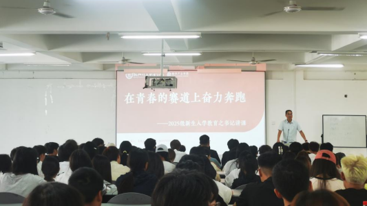 为帮助2025级新生快速融入校园生活、明晰学业方向、树立成长目标,9月24日,学院在3602教室举行“书记讲课”专项活动。学院党总支书记葛贤志以“在青春的赛道上奋力奔跑”为题,为全体2025级新生送上了一堂兼具思想深度与实践温度的入学必修课。讲课伊始,葛贤志代表学院对新生的到来表示热烈欢迎,用生动的案例介绍了学院