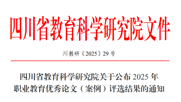 学院教师在2025年四川省教育厅职业教育优秀论文(案例)评选中荣获三等奖