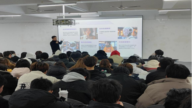 为帮助学生精准把握数字媒体行业发展脉搏,明晰企业人才需求导向,持续深化校企协同育人机制,12月24日,我院特邀成都蜗牛创想科技有限公司教学总监徐朝波到校,开展《AI视频剪辑革命与人才机遇》专题讲座。2025级数字媒体技术、融媒体技术专业学生代表齐聚现场,与企业专家零距离交流学习。宣讲会上,徐朝波立足数字产业发