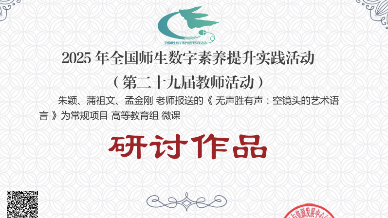 近日,2025年全国师生数字素养提升实践活动(第二十九届教师活动)评选结果正式公布。在高等教育组别的微课项目中,学院教师朱颖、蒲祖文、孟金刚团队的《无声胜有声:空镜头的艺术语言》成功入选活动研讨作品。朱颖老师团队围绕艺术设计类课程的数字化教学创新,以人工智能技术打造沉浸式教学场景,引入企业数字人导师衔接