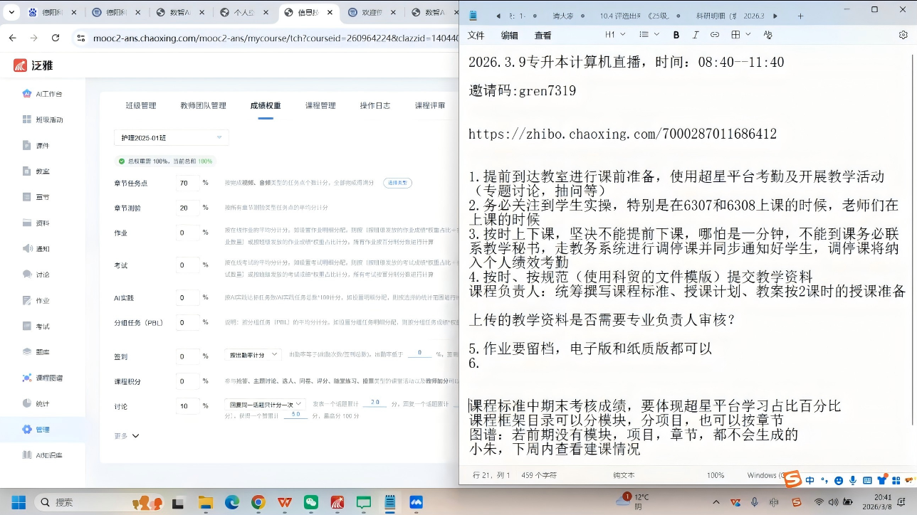 为确保2026年春季教学工作平稳有序开展,切实规范兼课教师教学行为、提升教学质量,3月8日,学院召开兼课教师线上教学工作会议。执行院长袁红团、教学行政办主任许薇、教学行政办教师及全体兼课老师参会。会上,袁红团围绕教学规范、课程资料与课程资源建设三大核心任务进行系统部署。在课堂教学规范上,重申课堂教学基本要